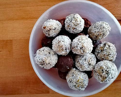 Retrouvez par exemple les recettes de POWER BALLS (ou ENERGY BALLS), qui vous permettront de bien répartir vos apports en calories afin d’éviter les grignotages à répétition.