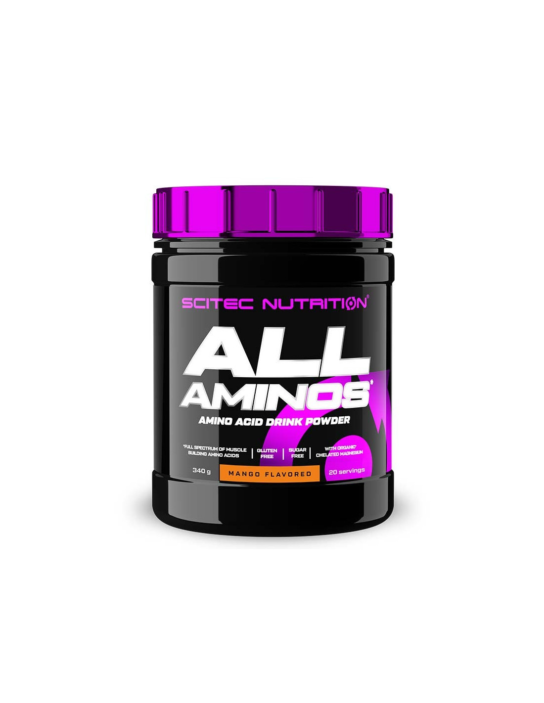 All Aminos Scitec Nutrition possède 9 acides aminés essentiels dont les BCAA (acides aminés branchés) indispensable au développement des muscles. La dose de 2,7g de BCAA apporte la quantité nécessaire pour cette action.