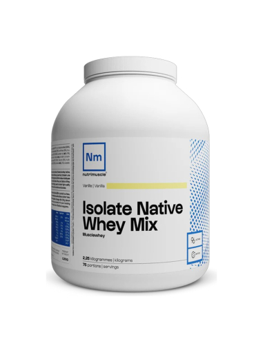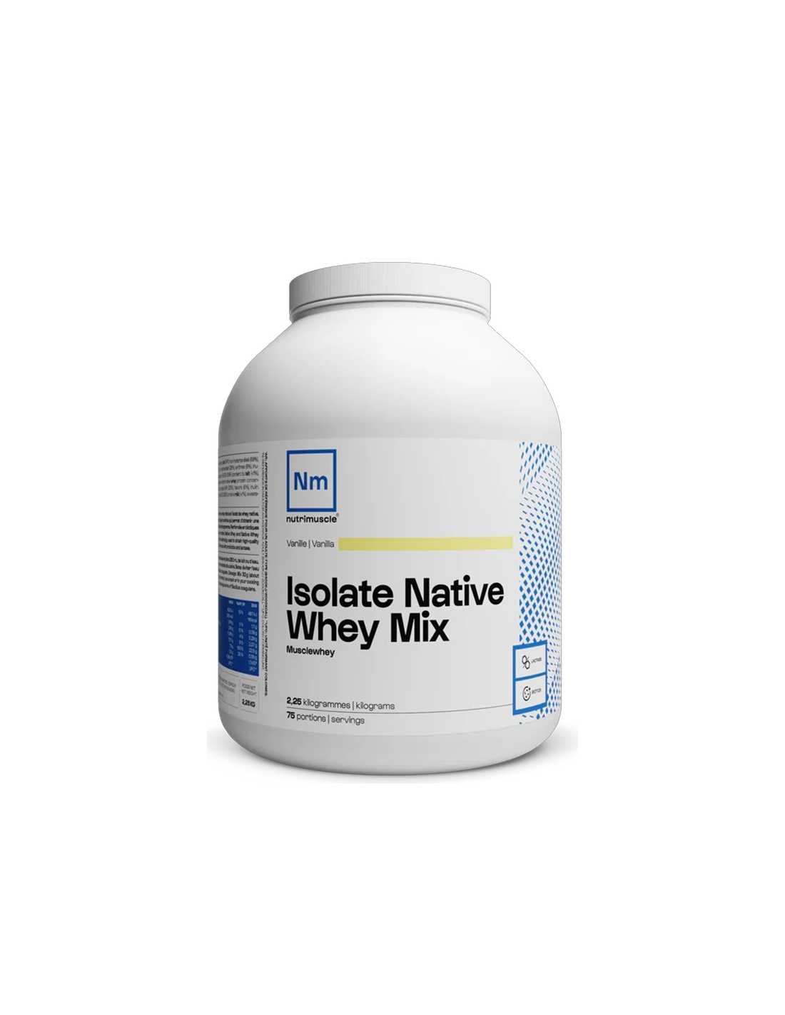 Isolate Native Whey Mix de Nutrimuscle est une protéine haut de gamme conçue pour les sportifs exigeants en quête de performance. Avec sa double assimilation rapide et prolongée, ce mélange unique de whey concentrée native et d'isolat de whey native optimise la récupération et la croissance musculaire. Enrichie en probiotiques, lactase et ingrédients premium, elle offre une digestion améliorée, un effet coupe-faim, et une qualité nutritionnelle irréprochable.