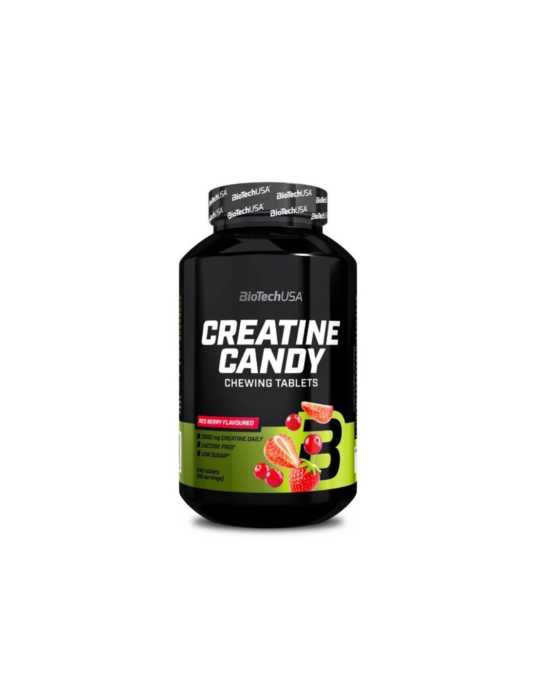 Creatine Candy est une alternative gourmande et pratique aux créatines traditionnelles. Elle fournit 3 g de créatine dans 4 comprimés à croquer, avec un goût fruité agréable.