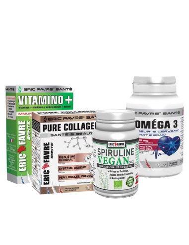 Profitez de la meilleure association possible de compléments alimentaires pour favoriser le bon fonctionnement du système immunitaire, du système cardiovasculaire et réduire la fatigue. L'apport en collagène contribue à la bonne santé des os, l'élasticité de la peau.