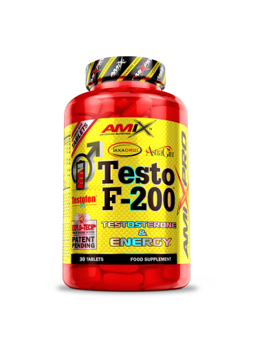 Testo F-200 Amix Nutrition est un complément premium conçu pour booster naturellement les taux hormonaux, notamment la testostérone. Sa formule puissante associe zinc, vitamine B3, acide D-aspartique, L-arginine AKG, Tribulus terrestris, MACA, ainsi que des ingrédients brevetés comme Testofen®, Taxadrol® et Astragin™. Idéal pour soutenir le métabolisme énergétique, réduire la fatigue et optimiser leur performance globale.