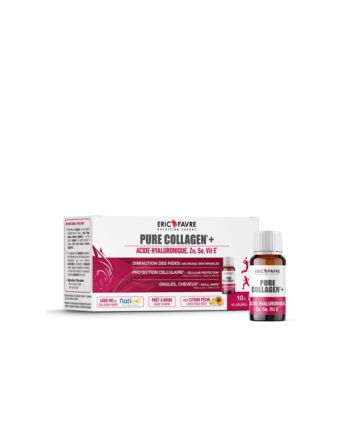Pure Collagen + de chez Eric Favre est un complément alimentaire à base de collagène marin hydrolysé Naticol®, conçu pour améliorer la santé des articulations, des ligaments, des os, des cheveux, de la peau et des ongles. Ce produit est particulièrement recommandé pour les sportifs et les personnes souhaitant compenser la perte naturelle de collagène qui commence dès l'âge de 20 ans.