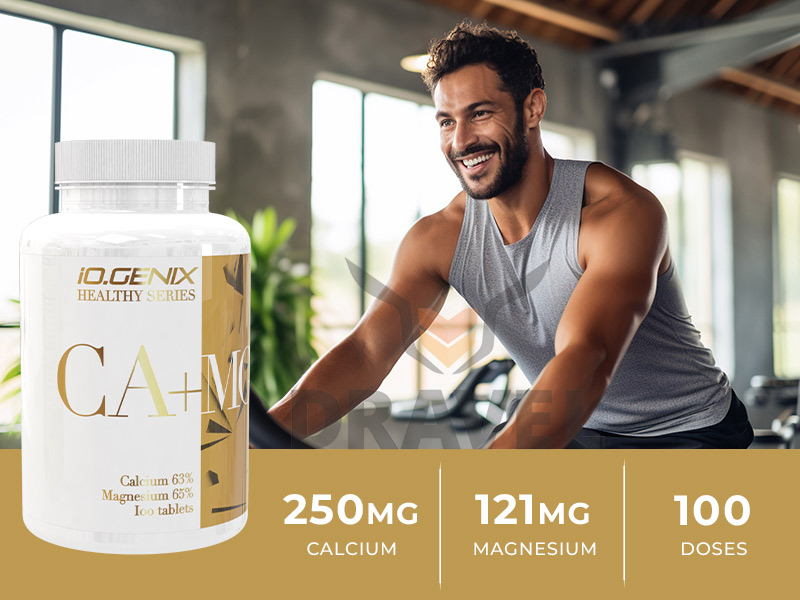 CA + MG de IO Genix est un complément alimentaire composé de minéraux de calcium et de magnésium.