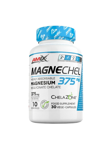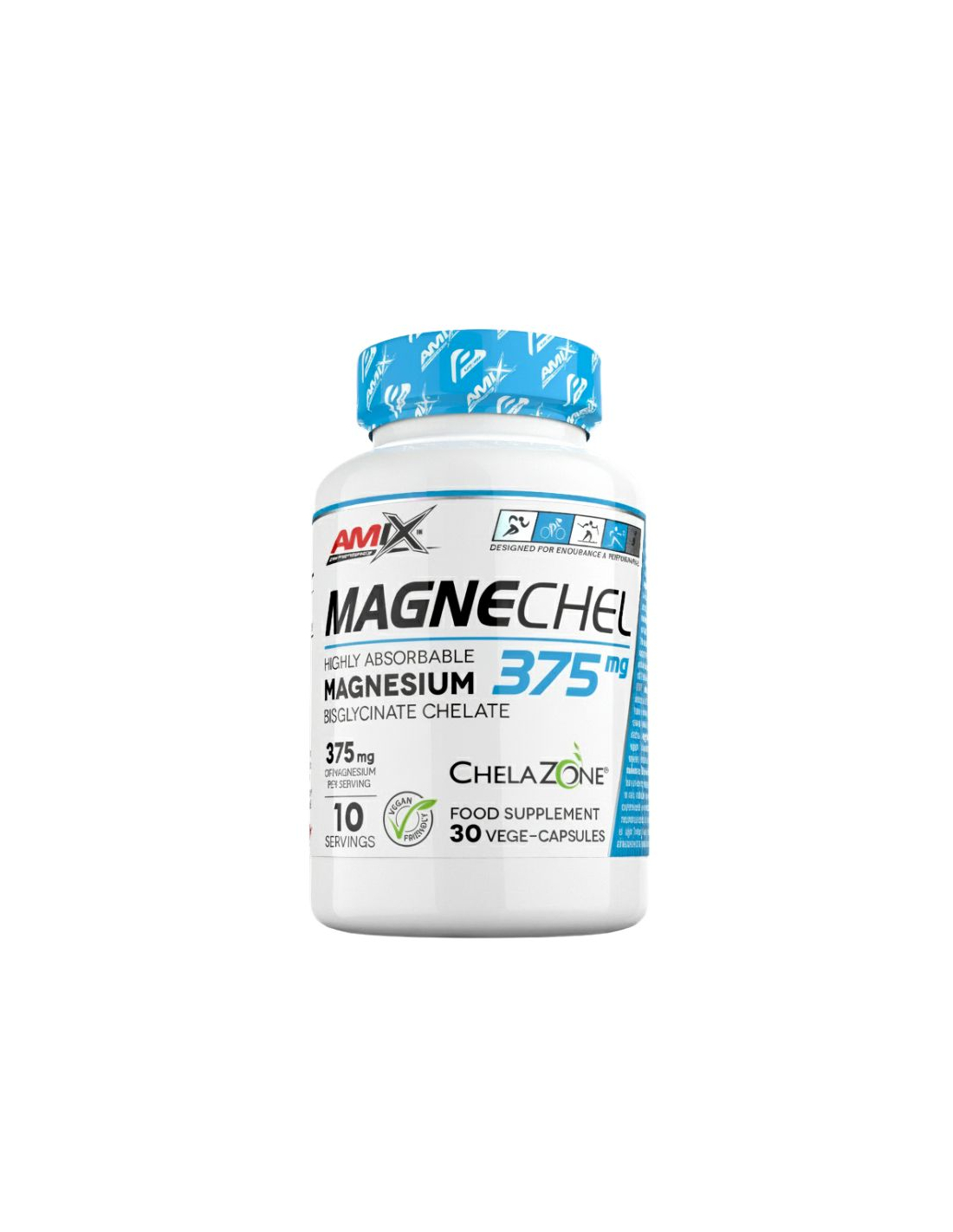 MagneChel® Amix Nutrition est un complément de magnésium bisglycinate hautement assimilable, conçu pour les sportifs exigeants. Grâce à la technologie Chelazone®, il assure une excellente tolérance digestive et une absorption rapide. Idéal pour prévenir les crampes, favoriser la récupération musculaire et optimiser la transmission nerveuse, MagneChel® se positionne comme un allié indispensable pour la performance et la santé. Avec un dosage précis de 100 mg par gélule, il s’intègre facilement à une routine quotidienne.